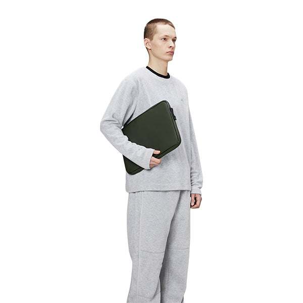 Trail Laptop-etui 15/16" er laget av Rains’ signaturvanntette PU-stoff, utviklet for styrke og holdbarhet.