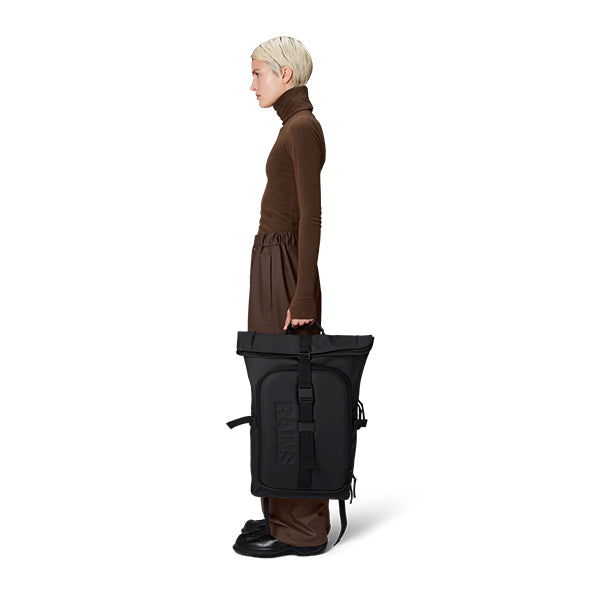 Texel Moulded Backpack er laget av Rains' signatur regntette PU-materiale, kjent for sin styrke, holdbarhet og glatte overflate. Innsiden er foret med en kjernegrå farge som gjør det lettere å finne og organisere innholdet, selv i svakt lys.