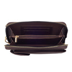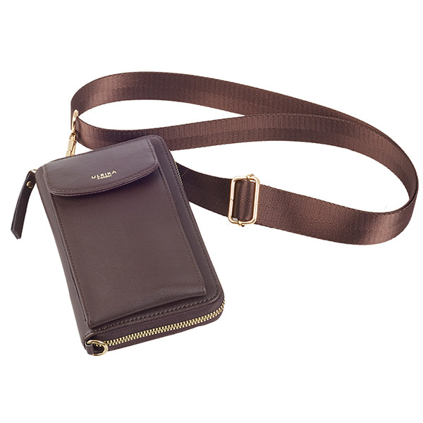Foran har vesken en utvendig lomme med en klafflukking som lukkes med magnet, ideell for å oppbevare en stor mobiltelefon slik at du enkelt kan ta den opp når du trenger den. I tillegg har vesken en romslig glidelåslomme. Inne i denne lommen finner du en liten glidelåslomme og flere kortlommer, perfekt for å organisere småtingene dine.