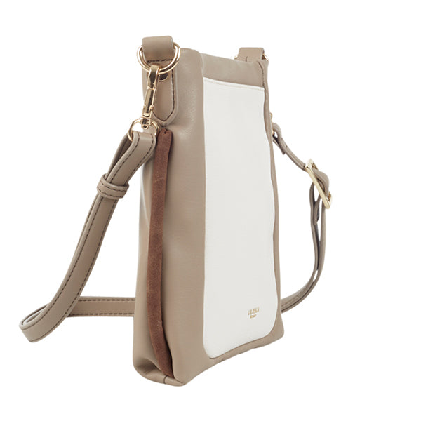 Flerfarget skulderveske fra Ulrika Design – en chic modell med et elegant design. Med sofistikerte kontraster i hvitt og brunt på både front og bakside, gir den et stilrent og moderne uttrykk. Den justerbare, avtagbare skulderremmen gjør vesken både praktisk og allsidig til enhver anledning. Innvendig finner du flere rom og lommer med lyst fôr, som gjør det enkelt å holde orden på sakene dine.