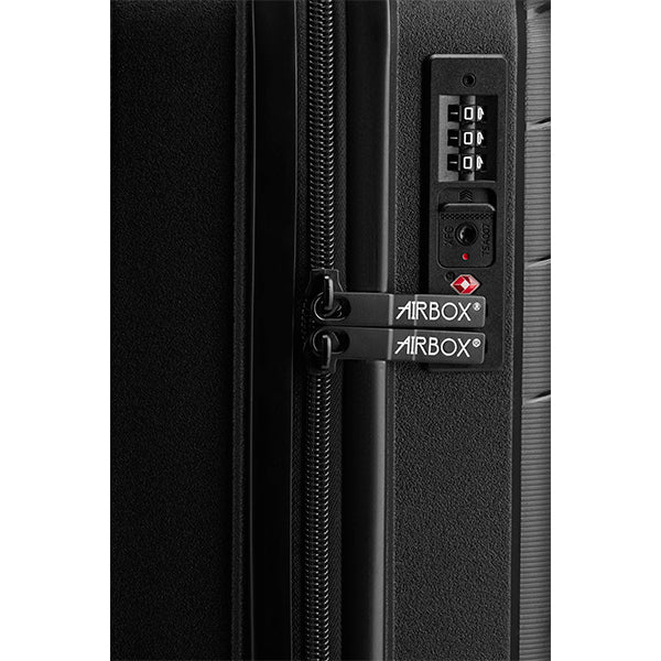 Skallet er laget i slagfast og resirkulerbar polypropylen, et materiale som kombinerer lav vekt med god slitestyrke. Den karakteristiske strukturen, utviklet av AIRBOX, bidrar til en robust konstruksjon som tåler påkjenninger under reise uten å bli tung å håndtere.