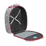 Kofferten har en utvendig glidelåslomme for småting, mens hovedrommet åpnes med en toveis glidelås. Innvendig er det en romslig avdeling med en stropp for å holde ting på plass, i tillegg til en åpen nettinglomme for enkel organisering. Det solide drahåndtaket er tilpasset barn, slik at de enkelt kan trille kofferten selv.