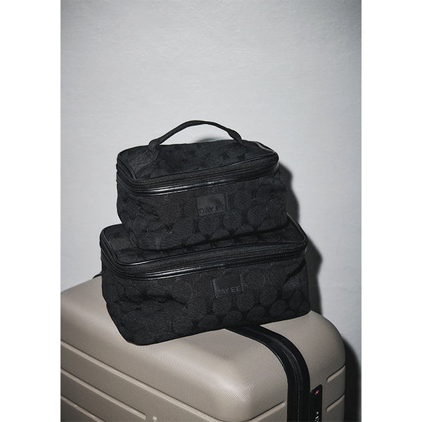 Hold sminke og skjønnhetsfavoritter samlet i denne elegante toalettvesken. Designet i lekkert jacquardmateriale med praktisk glidelåslukking, er den ikke bare fin å se på, men også superpraktisk. To åpne lommer og elastiske bånd innvendig gjør det enkelt å organisere produktene dine, så alt ligger på plass, uansett hvor du tar den med.
