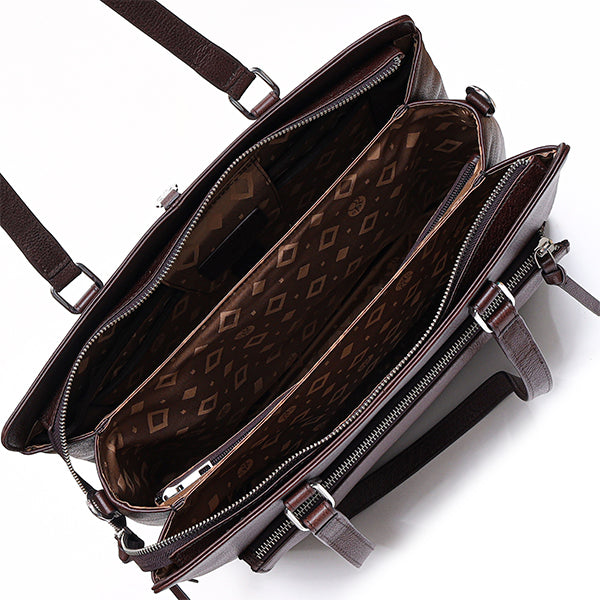 Innsiden er designet for maksimal organisering, med tre store avdelinger som gir god plass til alt du trenger. Den polstrede lommen beskytter laptop eller nettbrett, mens en stor glidelåslomme sørger for orden og oversikt. I tillegg har vesken en romslig utvendig glidelåslomme som gir rask tilgang til mobiltelefon, nøkler eller andre nødvendigheter.