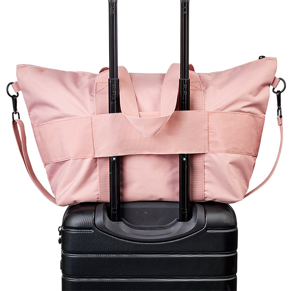 Den har to korte håndtak for enkel bæring, samt en avtakbar og justerbar stropp som lar deg velge om du vil bære den over skulderen eller som en crossbody. Fest den enkelt til kofferten med stroppen på baksiden, og nyt en sømløs og komfortabel reise uten unødvendig stress.