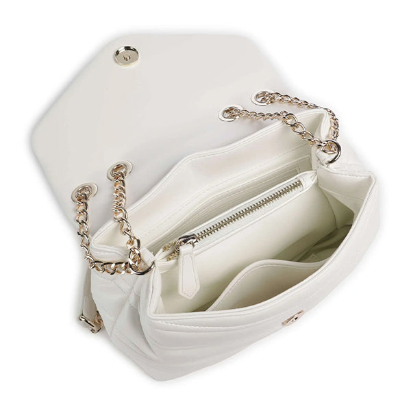 Denne stilrene vesken kombinerer eleganse og funksjonalitet med sitt quiltede design og sofistikerte detaljer. Den lukkes med en magnetisk klaff, som gjør det enkelt å åpne og lukke vesken samtidig som den holder eiendelene dine sikre. Skulderremmen kan bæres dobbelt over skulderen for et kortere uttrykk eller enkelt for å bruke den crossbody. De gullfargede, polerte metalldetaljene tilfører et eksklusivt preg, mens en dekorativ hengelås gir vesken en ekstra stilfull detalj.