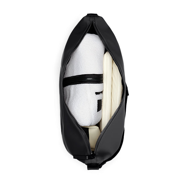 Valera Shoulder Bag Large er laget av Rains’ signatur-PU-stoff, som kombinerer et slitesterkt belegg med en myk bakside for ekstra komfort.