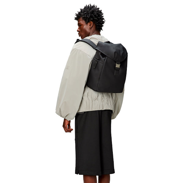 Sekken er laget av Rains’ signatur-PU-stoff med et mykt belegg på innsiden, som gir både slitestyrke og en behagelig følelse.