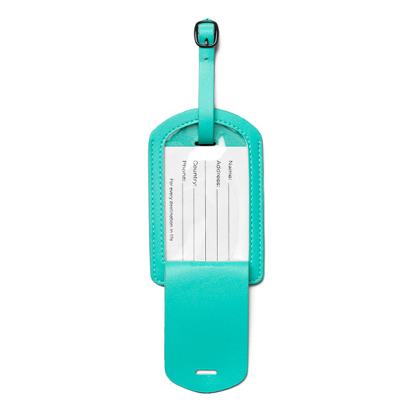 Denne navnelappen er laget i et skinnlignende materiale som gir et elegant og tidløst uttrykk. Den har en solid spenne som enkelt festes til kofferten eller en annen reiseveske. Lappen kan åpnes, og på innsiden finner du et felt hvor du kan skrive navn, adresse, land og telefonnummer, slik at bagasjen din alltid kan identifiseres. Praktisk, stilren og enkel å bruke – en ideell reisepartner for både korte og lange turer.