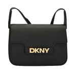 DKNY Avril Medium Crossbody Bag er laget av kuskinn med en saffiano-preget overflate, belagt med polyuretan for ekstra slitestyrke. Den faste strukturen gjør at vesken holder formen, samtidig som den føles lett og enkel i bruk.