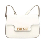 DKNY Avril Medium Crossbody Bag er laget av kuskinn med en saffiano-preget overflate, belagt med polyuretan for ekstra slitestyrke. Den faste strukturen gjør at vesken holder formen, samtidig som den føles lett og enkel i bruk.