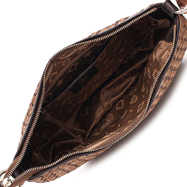 Det romslige hovedrommet gir god plass til alle nødvendigheter og lukkes sikkert med en glidelås. Inni vesken finnes en praktisk glidelåslomme som er perfekt for oppbevaring av småting som nøkler og kort, samt en åpen lomme som gir ekstra organisasjonsmuligheter. Den gjennomtenkte inndelingen hjelper deg å holde oversikt og enkelt finne det du trenger.