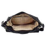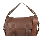 Vesken har lukking med klaff, hvor magnetknapper skjuler seg diskret bak de dekorative spennene foran. På baksiden finner du en praktisk glidelåslomme, ideell for ting du vil ha lett tilgjengelig. Innvendig er den fôret med lyst tekstil som gir god oversikt, og har både en liten glidelåslomme og to åpne lommer som hjelper deg med å holde orden på innholdet.