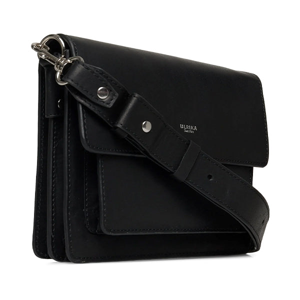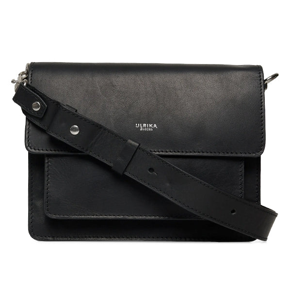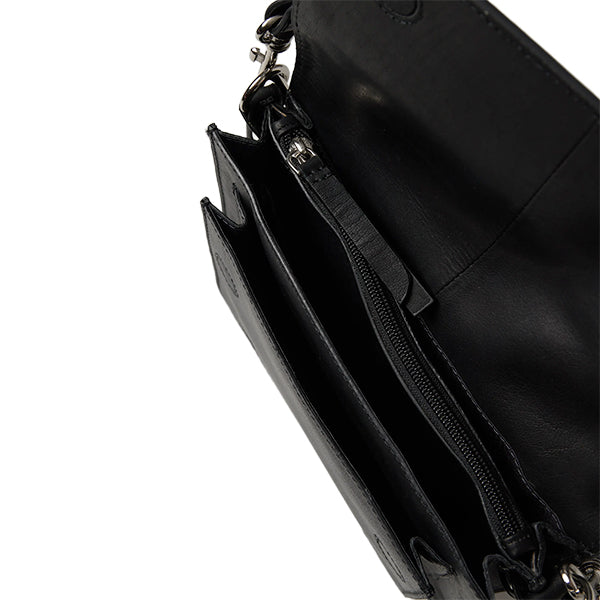 Denne vesken er laget i skinn og har et tidløst uttrykk som passer like godt til hverdags som til mer pyntede anledninger. Frontklaffen lukkes med to magnetiske knapper som gir enkel tilgang samtidig som innholdet holdes trygt på plass.