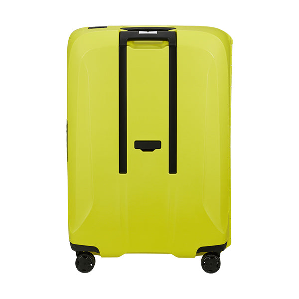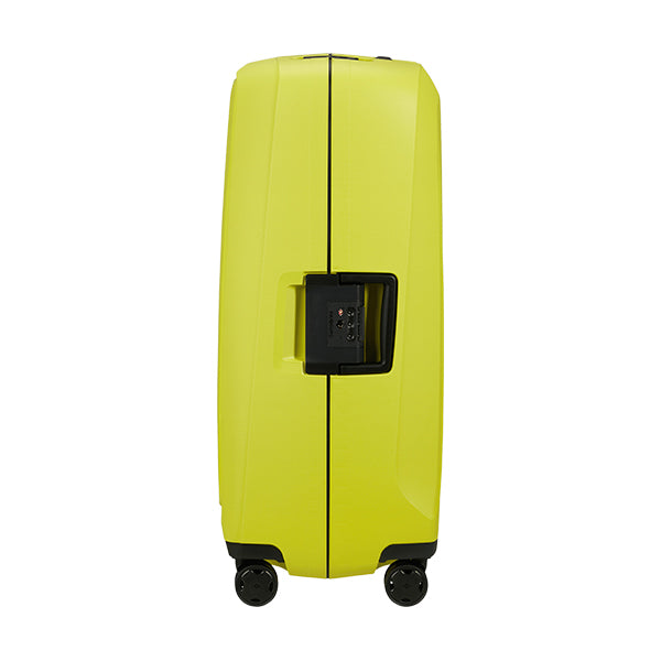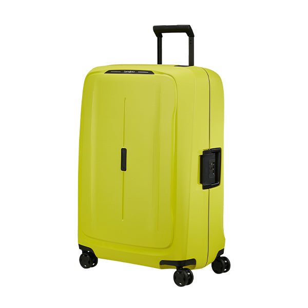 Essens er en robust og bærekraftig koffertmodell fra Samsonite, utstyrt med en pålitelig tre-punkts klipslås som inkluderer en kodelås på siden for ekstra sikkerhet. Kofferten har en praktisk gummilist langs åpningen som bidrar til å holde vann ute, men det er viktig å merke seg at den ikke er helt vanntett.