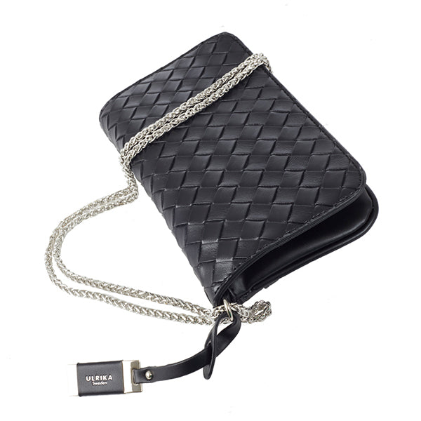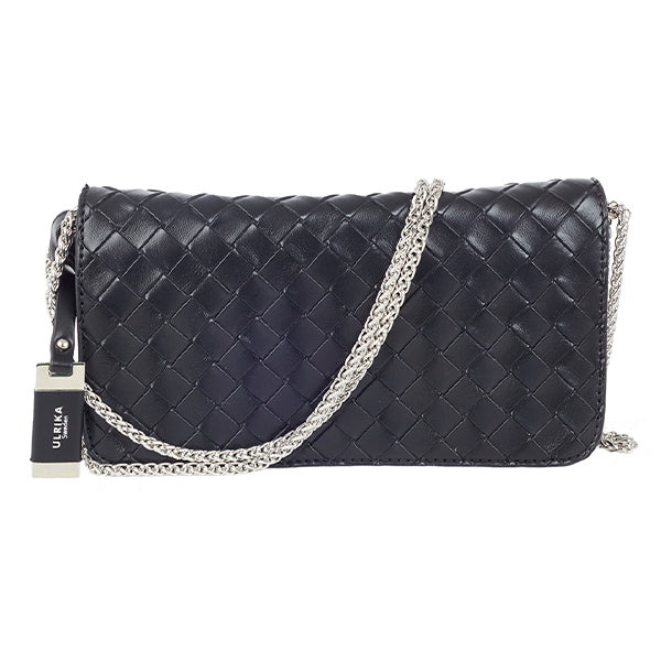 Denne lille konvoluttvesken fra Ulrika Design kombinerer klassisk eleganse med moderne materialvalg. Den flettede overflaten i kunstskinn gir vesken et eksklusivt preg, og gjør den til et sofistikert tilbehør – enten du bruker den til hverdags eller som prikken over i-en til festantrekket.