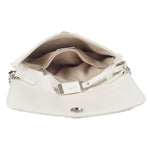 Vesken lukkes med en klaff og magnetknapp, og bæres med en tynn, sølvfarget kjettingrem som gir et pyntet og feminint uttrykk. Remmen kan brukes dobbelt for å bæres kort på skulderen, eller enkelt for en lengre lengde – perfekt når du vil bruke den crossbody.
