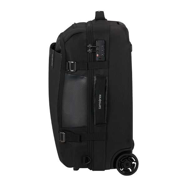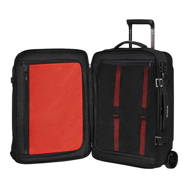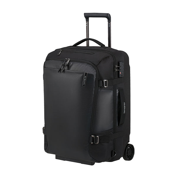 Denne allsidige trillekofferten i håndbagasjestørrelse kombinerer fleksibilitet med robust funksjonalitet. Du kan enkelt trille den som en vanlig koffert, eller ta den på ryggen ved hjelp av de integrerte, polstrede skulderstroppene som kan skjules når de ikke er i bruk. Perfekt når du må navigere trapper, brostein eller hektiske reisemiljøer.