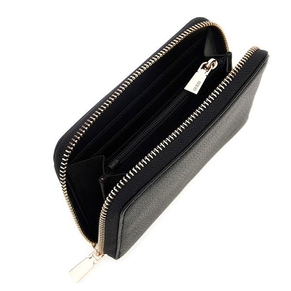 Innvendig har lommeboken god plass til det du trenger i hverdagen: fire kortlommer, to seddelrom, to sidelommer og et eget rom til mynter. Den tydelige Guess-logoen i front og de gullfargede detaljene gir et eksklusivt uttrykk som gjør lommeboken like fin alene som i en matchende veske.