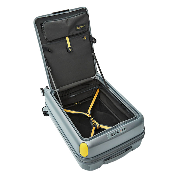 Denne kabinkofferten har en ekspanderbar konstruksjon som gir ekstra plass når du trenger det. Den kombinerer en klassisk åpning med en smart frontluke, slik at du både kan pakke og åpne kofferten på tradisjonelt vis, men også enkelt få tilgang til innholdet uten å åpne hele kofferten – perfekt når du trenger raske grep på reisen. Den integrerte TSA-låsen sørger for trygg reise, mens fire hjul gir enkel manøvrering og myke hjørnebeskyttere gir ekstra holdbarhet.