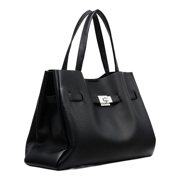 Innvendig er vesken romslig, med god plass til det du trenger gjennom dagen. Den solide konstruksjonen gjør at den holder fasongen, og metallspennen foran gir et markant, men stilrent preg.