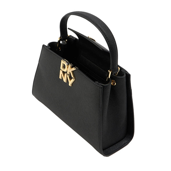 DKNY Foster Small Satchel er en stilren håndveske med en fast og lett avstivet fasong som gir vesken et elegant og velbalansert uttrykk. Den kompakte formen gjør at vesken holder seg pen i bruk og sitter fint både i hånden og på skulderen. Den glansfulle DKNY-logoen i front tilfører et eksklusivt preg og gir vesken akkurat nok karakter.