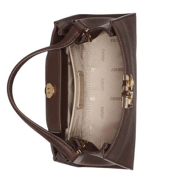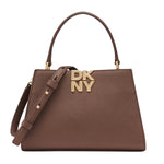 DKNY Foster Small Satchel er en stilren håndveske med en fast og lett avstivet fasong som gir vesken et elegant og velbalansert uttrykk. Den kompakte formen gjør at vesken holder seg pen i bruk og sitter fint både i hånden og på skulderen. Den glansfulle DKNY-logoen i front tilfører et eksklusivt preg og gir vesken akkurat nok karakter.