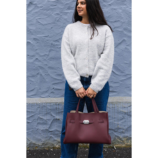 De doble håndtakene lar deg bære den i hånden eller på armen, og med den avtakbare, justerbare skulderstroppen kan du enkelt bruke den som crossbody når du er på farten. Bunnen er forsterket slik at vesken står stødig når du setter den fra deg.