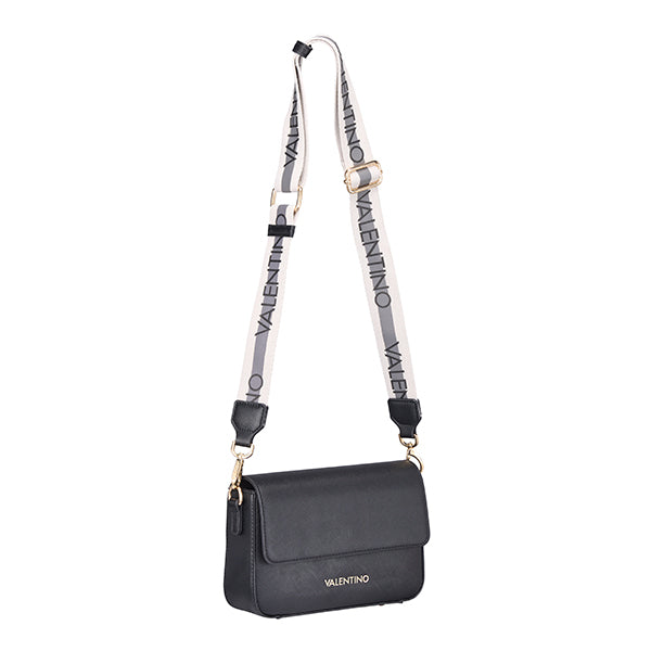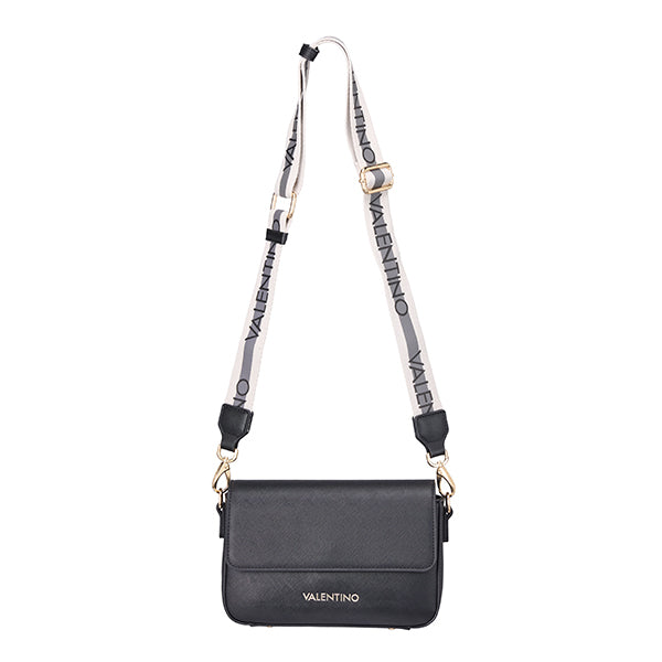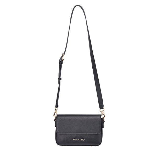 Valentino Zero Re Flap Bag er en sofistikert skulderveske som kombinerer klassisk design med moderne funksjonalitet. Vesken er laget i slitesterk skinnimitasjon med en elegant, sort finish og strukturert overflate. Den stabile bunnen med beskyttende metallføtter gjør at vesken står stødig, mens den ikoniske VALENTINO-logoen gir et eksklusivt uttrykk.