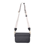 Vesken lukkes med glidelås, klaff og magnetlukking, og har et oversiktlig hovedrom med både glidelåslomme og åpen lomme på innsiden – perfekt til å holde orden på små nødvendigheter. Den leveres med to avtagbare skulderremmer i ulike lengder, slik at du kan tilpasse stilen etter anledning og antrekk.