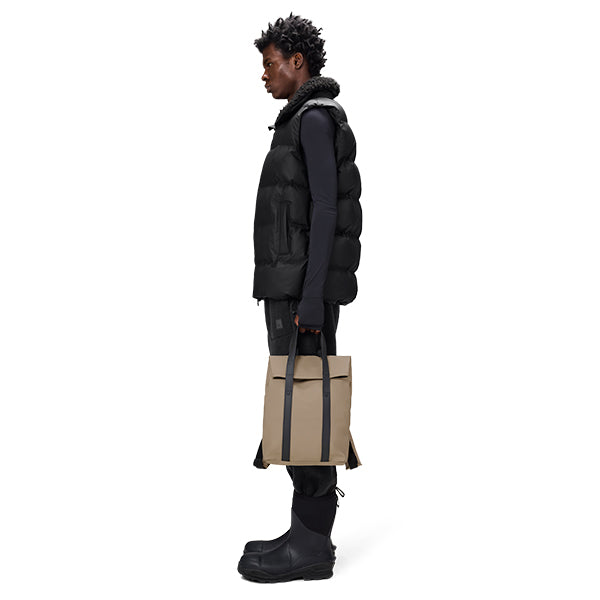 Laget i Rains sitt signaturbelagte PU-materiale, byr 2 Way Tote Backpack Mini på slitestyrke, funksjonalitet og en glatt finish – en allsidig følgesvenn som kombinerer stil og praktiske løsninger i hverdagen.