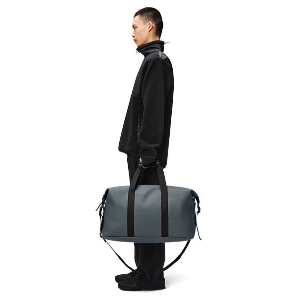 Klassisk og romslig weekendbag fra Rains, designet for helgens spontane utflukter og lengre eventyr! Denne bagen har en stilren, urban look med sitt matte, vannavvisende materiale som kombinerer eleganse med praktisk funksjonalitet – perfekt for deg som både vil ha stil og bekvemmelighet.