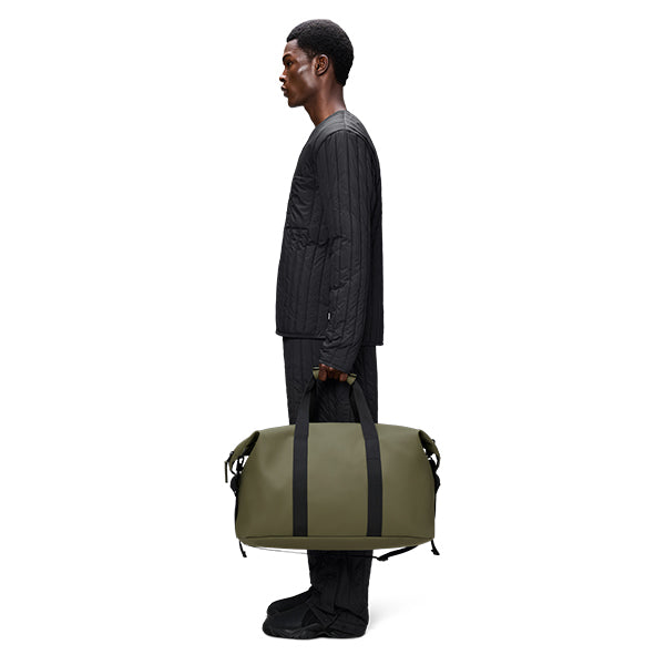 Klassisk og romslig weekendbag fra Rains, designet for helgens spontane utflukter og lengre eventyr! Denne bagen har en stilren, urban look med sitt matte, vannavvisende materiale som kombinerer eleganse med praktisk funksjonalitet – perfekt for deg som både vil ha stil og bekvemmelighet.