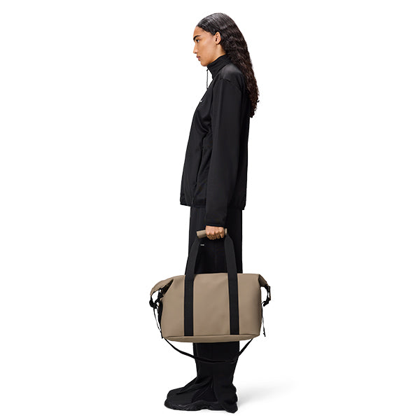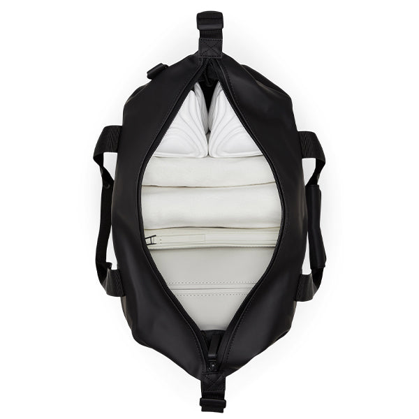 Hilo Weekend Bag Small er den perfekte følgesvennen for korte turer og helgeturer der du ønsker å pakke lett. Som den minste modellen i serien, har den et rent og moderne design som kombinerer Rains’ vannavvisende signaturmateriale med stilrene stroppe- og metalldetaljer.
