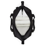 Baggen åpnes med en belagt glidelås som strekker seg over hele lengden, og innvendig finner du et romslig hovedrom med plass til klær, tekniske enheter og andre nødvendigheter. Når baggen er pakket, kan de justerbare kompresjonsstroppene på sidene strammes for å holde innholdet sikkert på plass.
