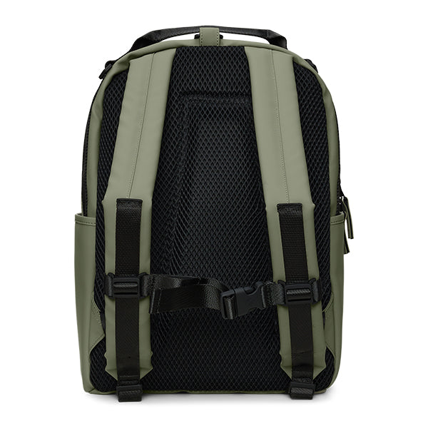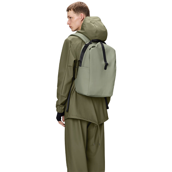 Med justerbare, polstrede skulderstropper, brystrem og et komfortabelt, ventilert ryggpanel er sekken laget for bevegelse. Clip Front Backpack er laget i Rains’ signaturmateriale – et slitesterkt og regntett PU-stoff med en jevn og myk overflate, utviklet for å tåle både daglig bruk og skiftende vær.