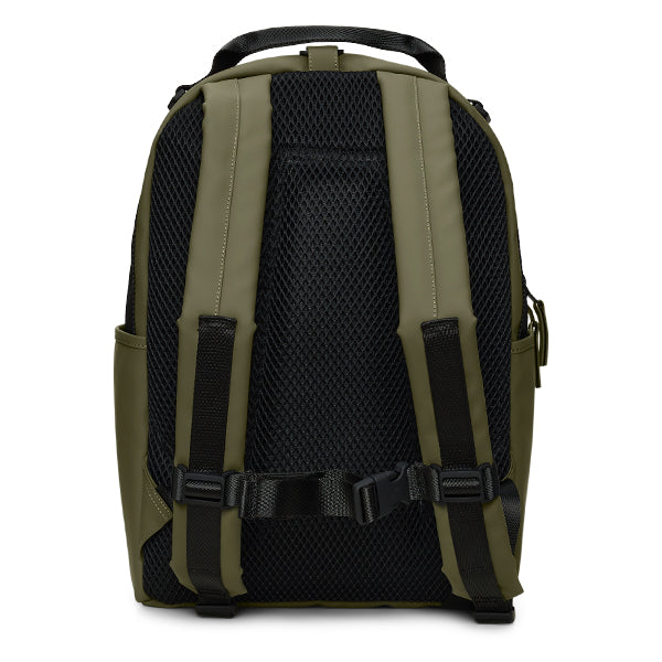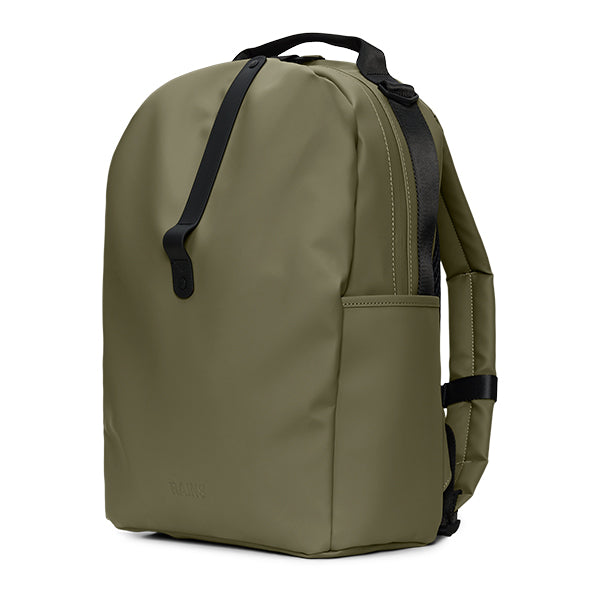 Med justerbare, polstrede skulderstropper, brystrem og et komfortabelt, ventilert ryggpanel er sekken laget for bevegelse. Clip Front Backpack er laget i Rains’ signaturmateriale – et slitesterkt og regntett PU-stoff med en jevn og myk overflate, utviklet for å tåle både daglig bruk og skiftende vær.