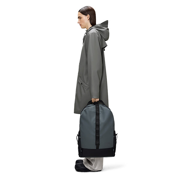 Trail Clip Front Backpack er laget for en aktiv livsstil, med en kombinasjon av praktiske løsninger og et tidløst, urbant uttrykk. Den er regntett og laget i Rains sitt signaturmateriale i PU, kjent for slitestyrke, holdbarhet og en jevn overflate.