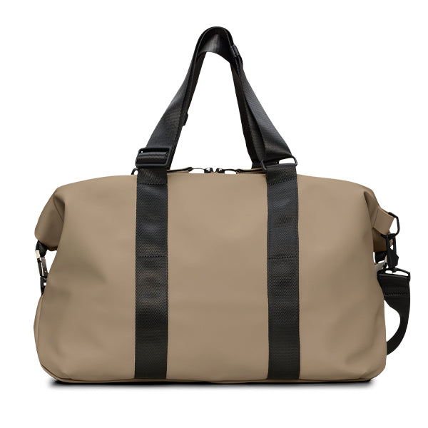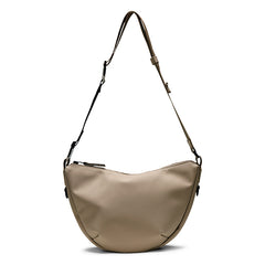 Materialet er Rains sitt signaturbelagte PU-stoff med en mykere innside, som kombinerer holdbarhet, regntetthet og en glatt overflate. Den avslappede silhuetten gjør at baggen føles uanstrengt, samtidig som den er både slitesterk og praktisk til både reise, trening eller helgeturer.