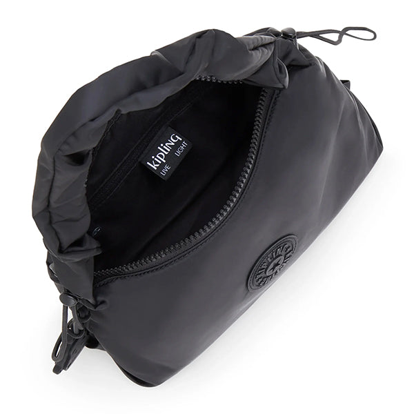 Vesken har et hovedrom med glidelås og en liten glidelåslomme på innsiden til små nødvendigheter. Den leveres også med den ikoniske Kipling-apen som nøkkelanheng. En liten, allsidig veske som enkelt kan tilpasses både antrekk og anledning.