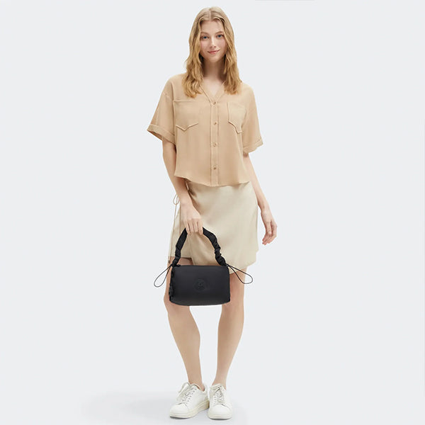 Eleni er en kompakt skulderveske som passer perfekt både til hverdags og kveldsbruk. Den har en stilig skulderrem med rynkede detaljer som kan justeres på hver side – stram den for et mer markert, trendy uttrykk, eller slakk den for en jevnere og mer minimalistisk stil.