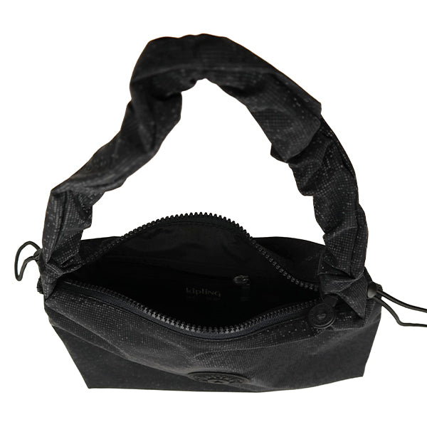 Vesken har et hovedrom med glidelås og en liten glidelåslomme på innsiden til små nødvendigheter. Den leveres også med den ikoniske Kipling-apen som nøkkelanheng. En liten, allsidig veske som enkelt kan tilpasses både antrekk og anledning.