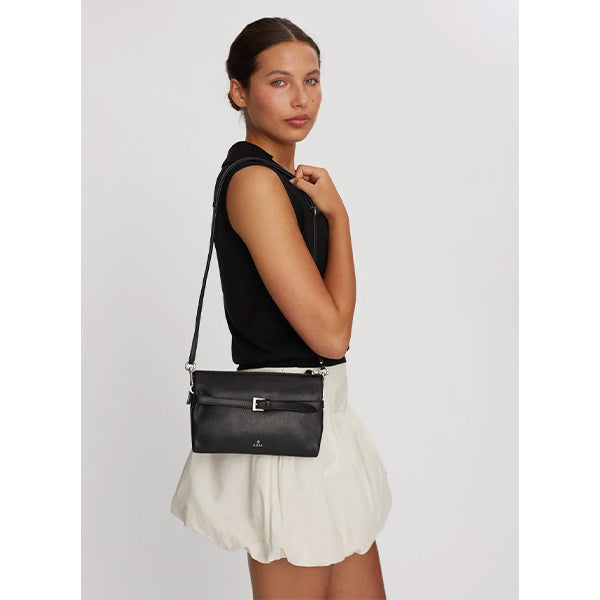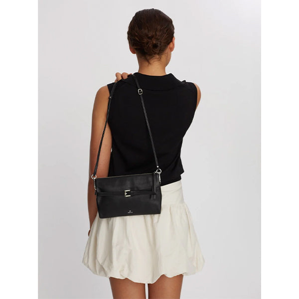 Stilren skulderveske i mykt skinn med et tidløst uttrykk som passer like godt til hverdagsbruk som til mer pyntede anledninger. Det rene designet løftes av en diskret beltedetalj i front, som gir vesken et klassisk og gjennomført preg.