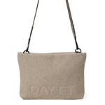En allsidig veske i mykt woolen lookalike-materiale som gir et lyst og rolig preg. Den kan brukes både som clutch eller crossbody, og den nedsenkede glidelåsen sørger for en ren og praktisk avslutning.