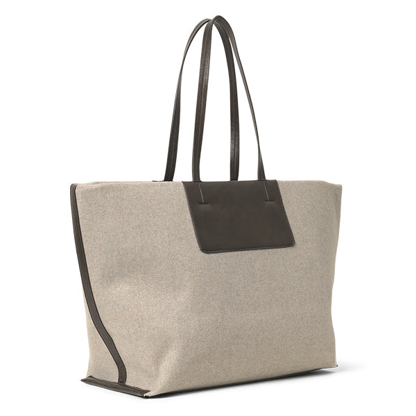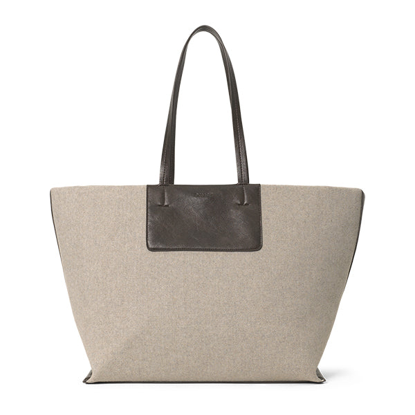 Vesken er laget i et mykt melert tekstil med elegante detaljer i kunstskinn, og den forsterkede bunnen gir ekstra stabilitet. Den balanserer funksjon og stil på en måte som gjør den til et naturlig valg, enten du er på vei til jobb, forelesning eller en liten reise.