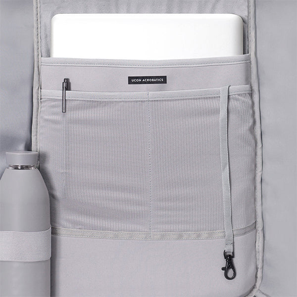 Inni møter funksjon form. Sekken rommer et høykvalitets laptoprom med innebygd støtdemper som beskytter en PC eller et nettbrett opptil 16,4”. I tillegg er det elastisk flaskeholder, nøkkelfeste og to praktiske nettinglommer til småting som mobil, lader eller nøkler. Den polstrede ryggen og de justerbare skulderremmene gir komfort hele dagen, mens en forsterket bunn gir ekstra stabilitet.