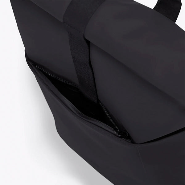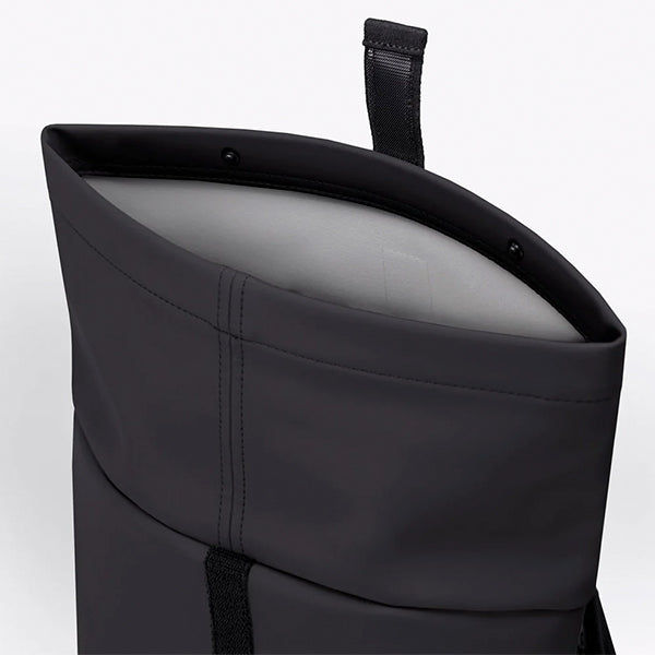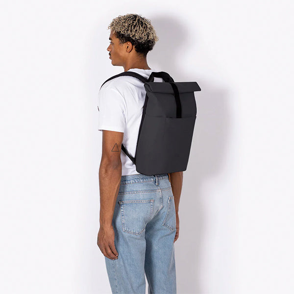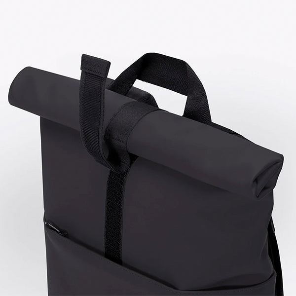 Hajo Mini Backpack er den kompakte utgaven av Ucon Acrobatics' urbane signaturmodell – like gjennomført i uttrykket, men lettere å ha med seg i hverdagen. Den karakteristiske roll-top-lukkingen gir sekken et moderne preg, samtidig som den gjør det enkelt å justere volumet etter hvor mye du skal ha med deg. Lukkemekanismen er praktisk og rask med borrelås og trykknapper, og du får også direkte tilgang til hovedrommet via en vertikal glidelås på baksiden.