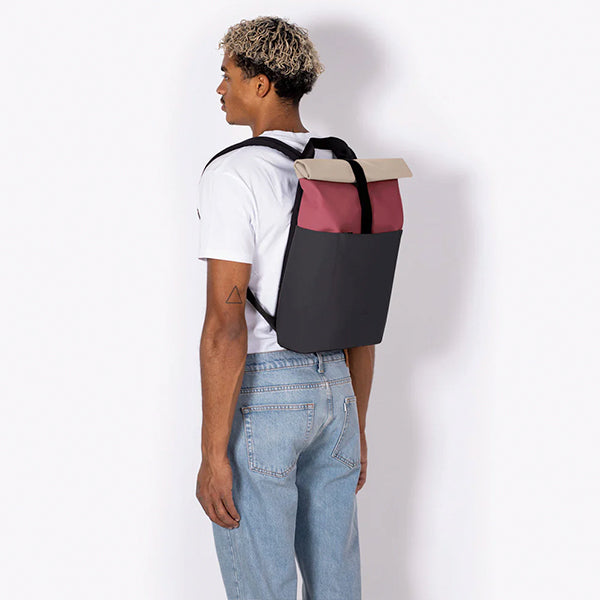 Hajo Mini Backpack er den kompakte utgaven av Ucon Acrobatics' urbane signaturmodell – like gjennomført i uttrykket, men lettere å ha med seg i hverdagen. Den karakteristiske roll-top-lukkingen gir sekken et moderne preg, samtidig som den gjør det enkelt å justere volumet etter hvor mye du skal ha med deg. Lukkemekanismen er praktisk og rask med borrelås og trykknapper, og du får også direkte tilgang til hovedrommet via en vertikal glidelås på baksiden.