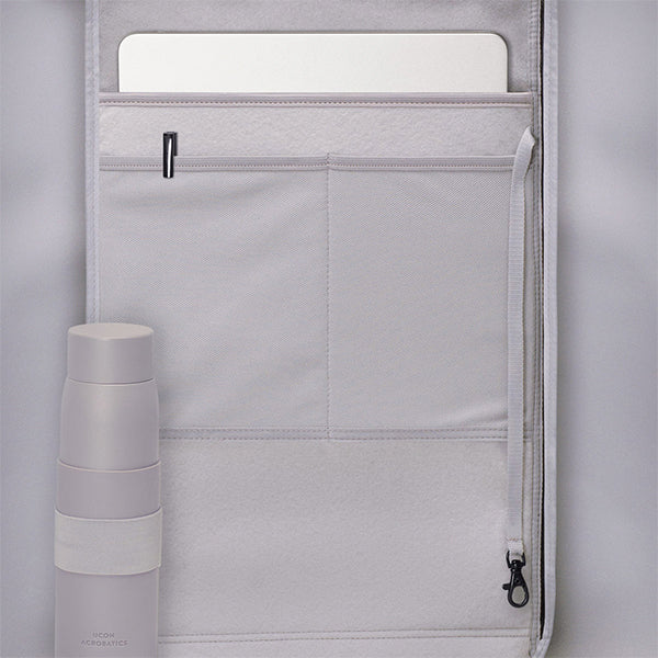 På utsiden finner du to sidelommer som passer perfekt til flaske eller paraply, samt en frontlomme med vannavvisende glidelås til småting du vil ha lett tilgjengelig. Inni er sekken overraskende romslig for størrelsen, med et beskyttende laptoprom i resirkulert neopren som passer opptil 16,4" PC eller nettbrett. I tillegg har den elastisk flaskelomme, nøkkelfeste og to nettinglommer til mobil, lommebok eller ladekabel.