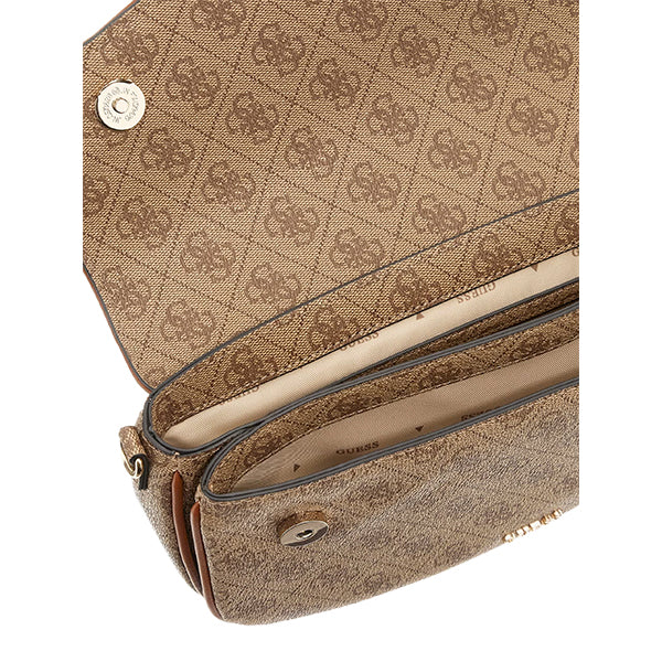 Hovedrommet åpnes med klaff og magnetlås, og innvendig finner du et lyst fôr med logo-detaljer samt to åpne avdelinger. I tillegg har vesken en liten glidelåslomme for ekstra trygg oppbevaring, samt en skjult slide-in-lomme foran – praktisk for det du vil ha rask tilgang til.